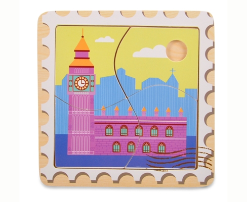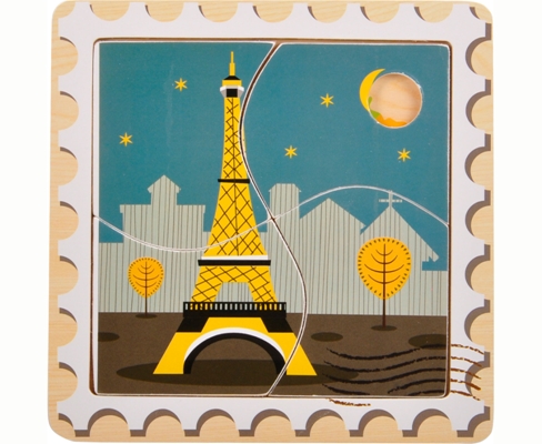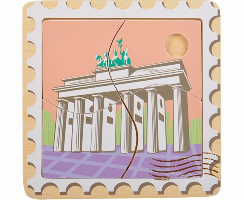 3 luoghi di Berlino, Londra e Parigi sono raffigurati in questi puzzle di legno da quattro pezzi.