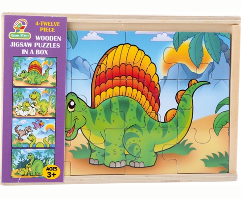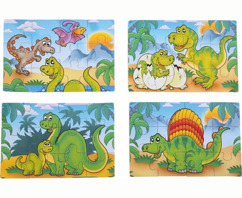 4 puzzle da 12 pezzi sul mondo dei dinosauri.