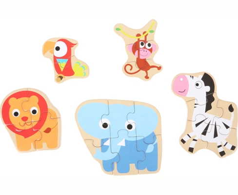 Set di 5 puzzle in legno Animali selvaggi - Small Foot 10551
